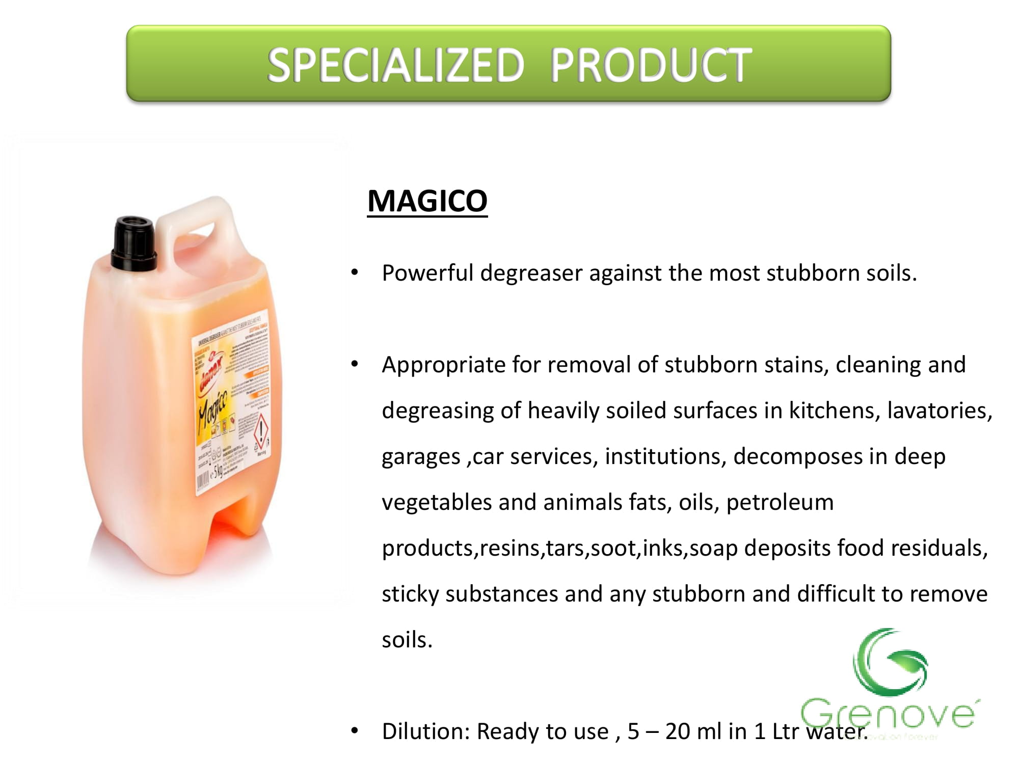 Grenove services is a leading supplier of sustainable, biodegradable industrial-grade cleaning chemical solutions and revolutionary cleaning equipments in India. We analyse and provide economically and ecologically beneficial products for professional spaces and train hygiene maintenance personnel to rightly use super-concentrate chemicals and mechanical equipment.
